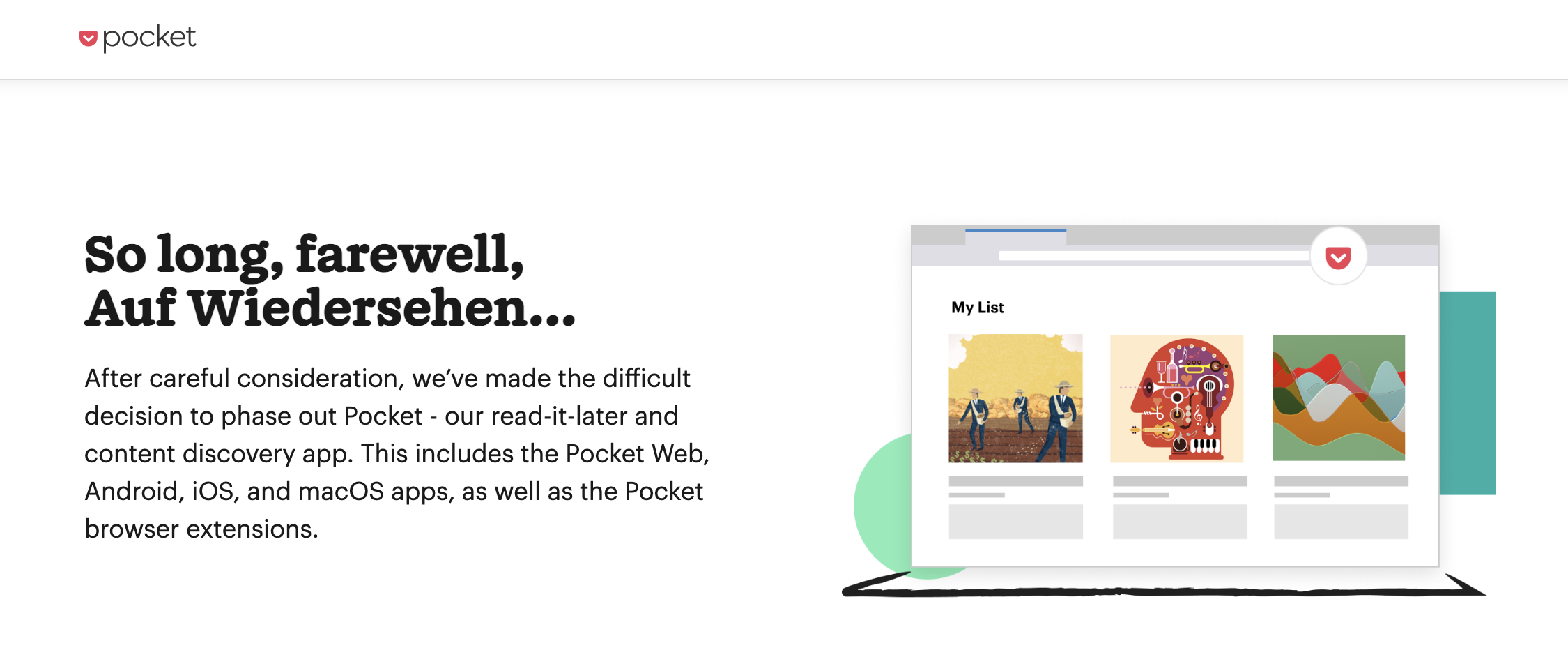 I had been a Pocket user for the past 4-5 years as my save-for-later app. And then Mozilla randomly decided to shut it down in July 2025.